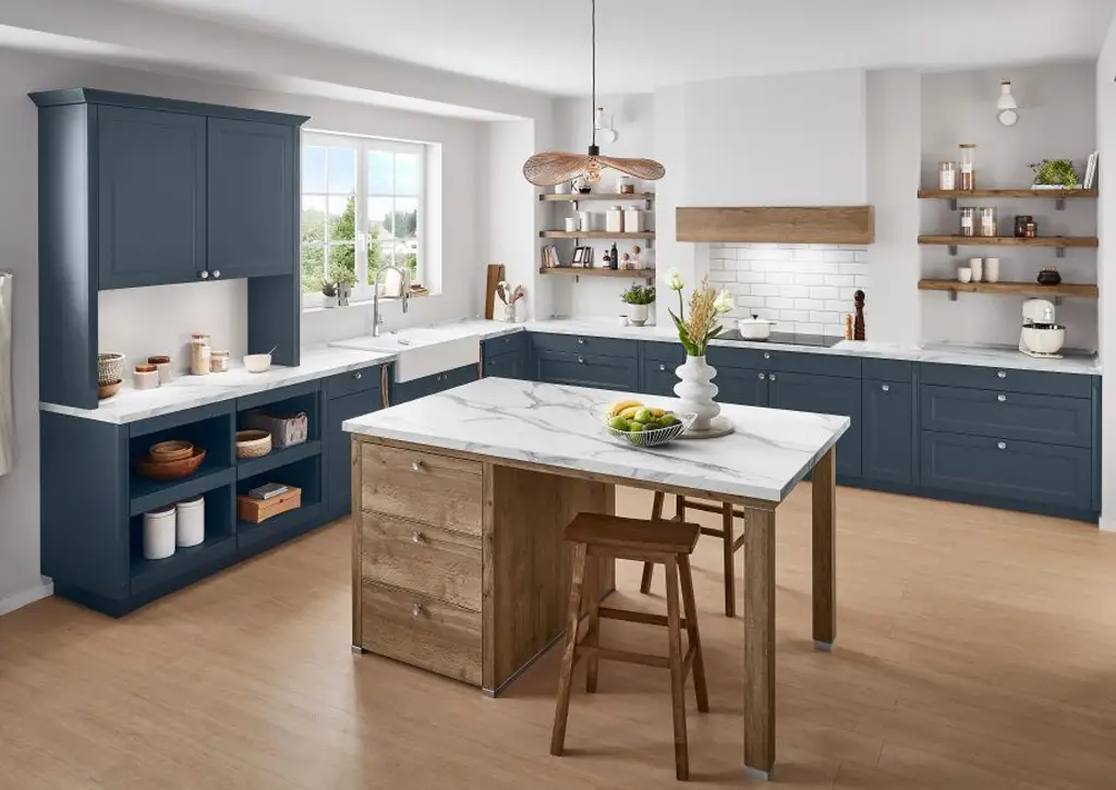 Cuisines intemporelles revisitées avec des matériaux modernes.