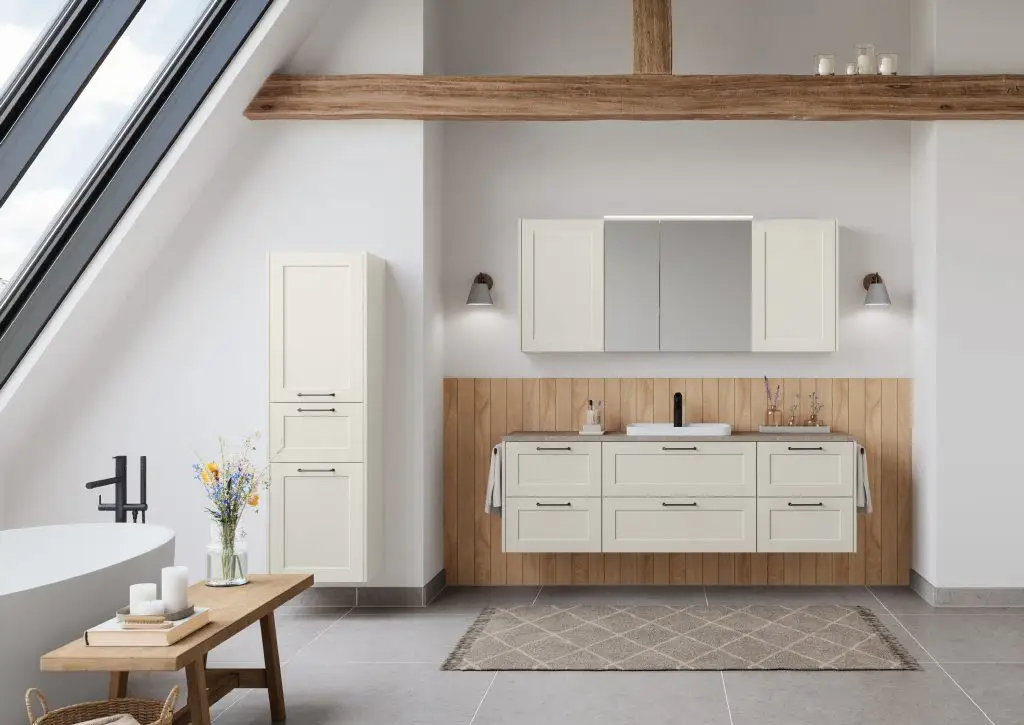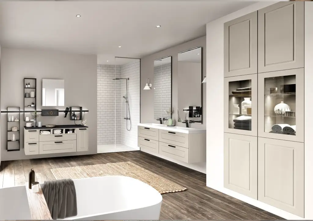 Absolument. Une salle de bains est une pièce humide qui demande des matériaux spécifiques. Nos gammes sont conçues avec des panneaux et des finitions (laques, stratifiés hydrofuges) testés pour résister aux variations de température et à l’humidité ambiante, garantissant une longévité bien supérieure aux meubles en kit standards.